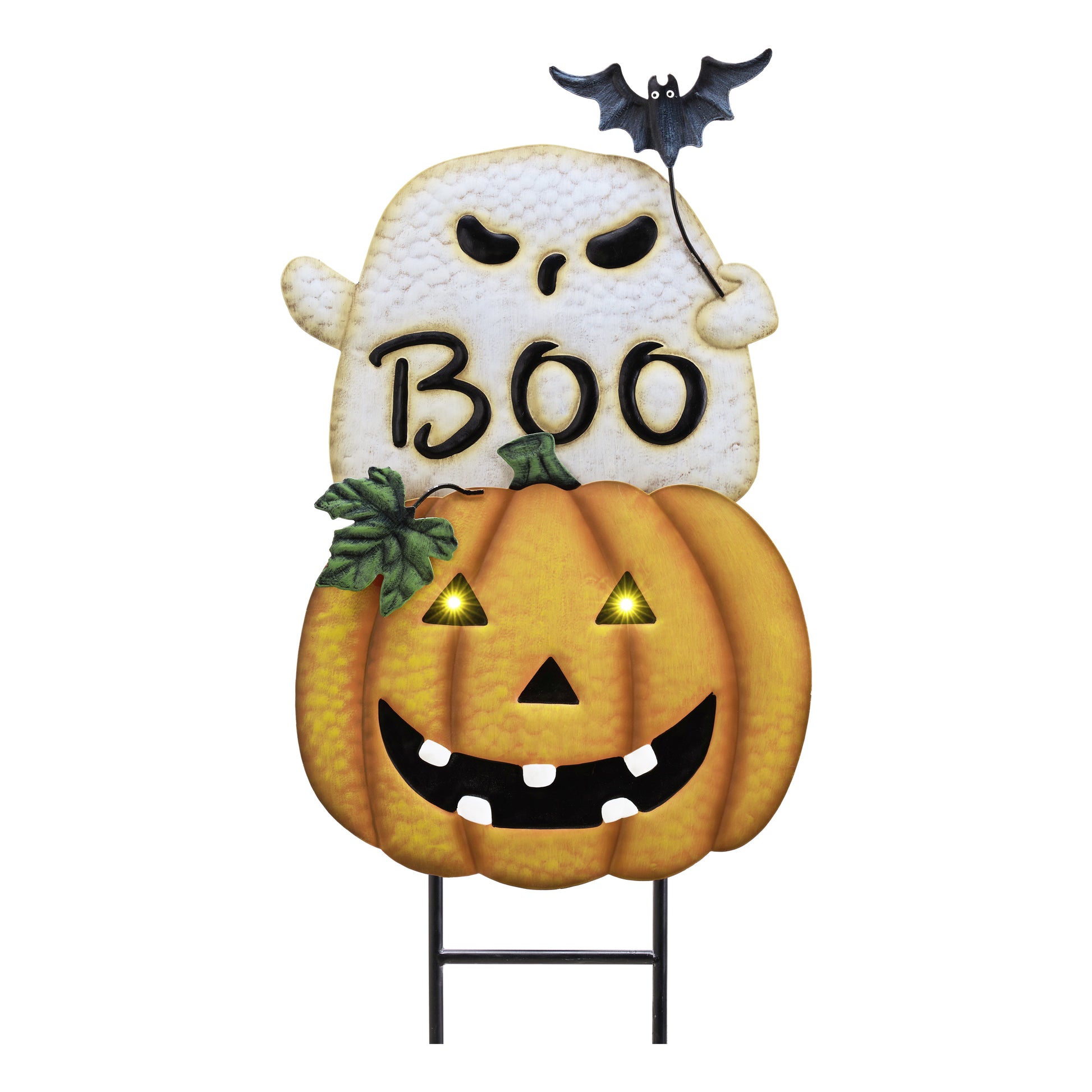 TERESA'S COLLECTIONS Halloween Decorations for Outdoor, Cute Spooky Decorative Garden Stakes with Solar Light, Jack O Lantern Metal Yard Sign for Home Patio Halloween Party, 23"