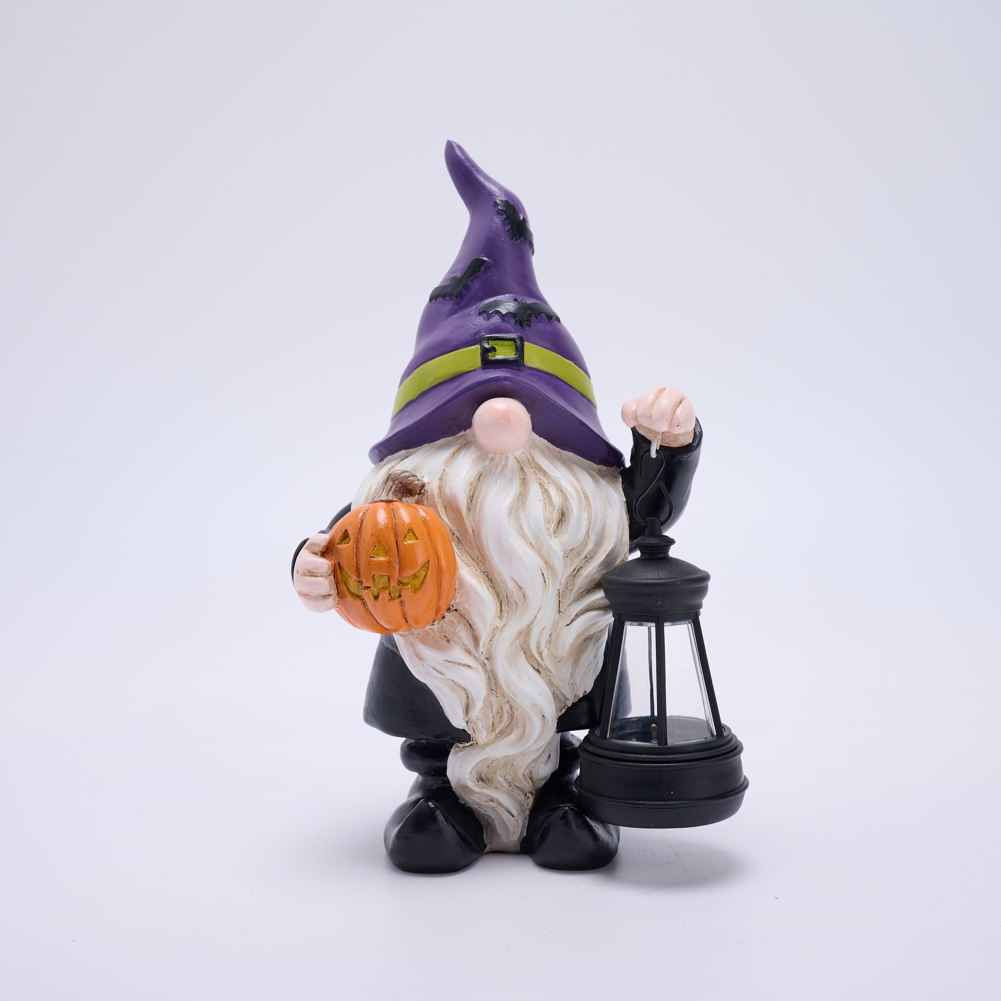 TERESA'S COLLECTIONS Halloween Decorations Garden Gnomes Statues with Solar Lights,Cute Purple Bat Hat Resin Decor with Lantern for Home,Table,Outdoor,Yard,Pumpkin Jack-o-Lanterns,Gifts for Party,8"