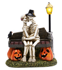 TERESA'S COLLECTIONS Love Never Dies Halloween Decorations with Solar Lights for Garden Decor,Romantic Skeleton Couple Kissing on Coffin Chair,Resin Pumpkin Decor Gifts for Party,Home,Outdoor,6"